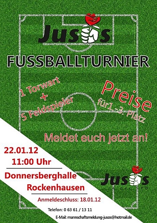 Dann haben wir genau das Richtige für dich: Die Jusos Donnersbergkreis veranstalten am Sonntag, den 22.01.2012, ein Hallenfußballturnier in der Donnersberghalle in Rockenhausen.