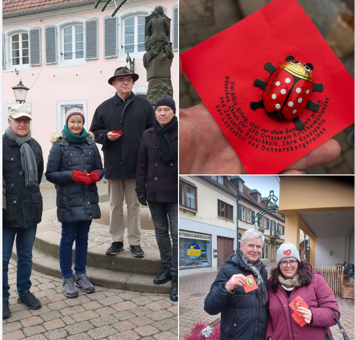 Auch in diesem Jahr verteilten Mitglieder unseres Ortsvereins Glücksbringer, unterstützt von Jaqueline Rauschkolb (MdB und unsere Kandidatin für das Amt der Landrätin im Donnersbergkreis)