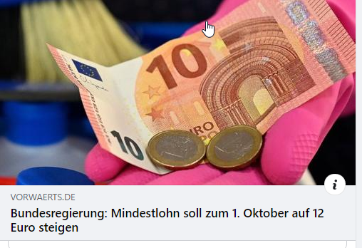 Bundesregierung: Mindestlohn soll am 1. Oktober 2022 auf 12€ steigen