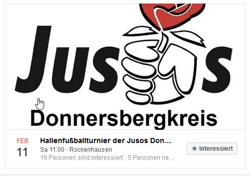 Die Jusos Donnersbergkreis veranstalten am Samstag, den 11. Februar 2017, ein Hallenfußballturnier in der Donnersberghalle in Rockenhausen. Los geht´s ab 11.00 Uhr (Einlass ab 09.30Uhr). Auf dem Platz stehen dann 4 Feldspieler sowie ein Torwart. Wichtig ist auch: