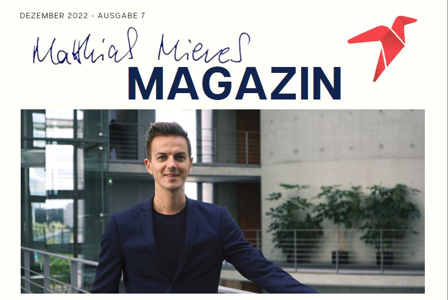 Matthias Mieves: ": Dieses Mal geht es unter anderem darum, was die Regierung für die arbeitende Bevölkerung erarbeitet, aber auch um die Herabsetzung des Wahlalters auf 16 auf europäischer Ebene und das Wasserkraftwerk in Wolfstein. Außerdem gibt es Informationen über meine Rede im Bundestag zu den digitalen Gesundheitsthemen im Bundeshaushalt. Über Euer Feedback freue ich mich. Und nun viel Spaß beim Lesen!