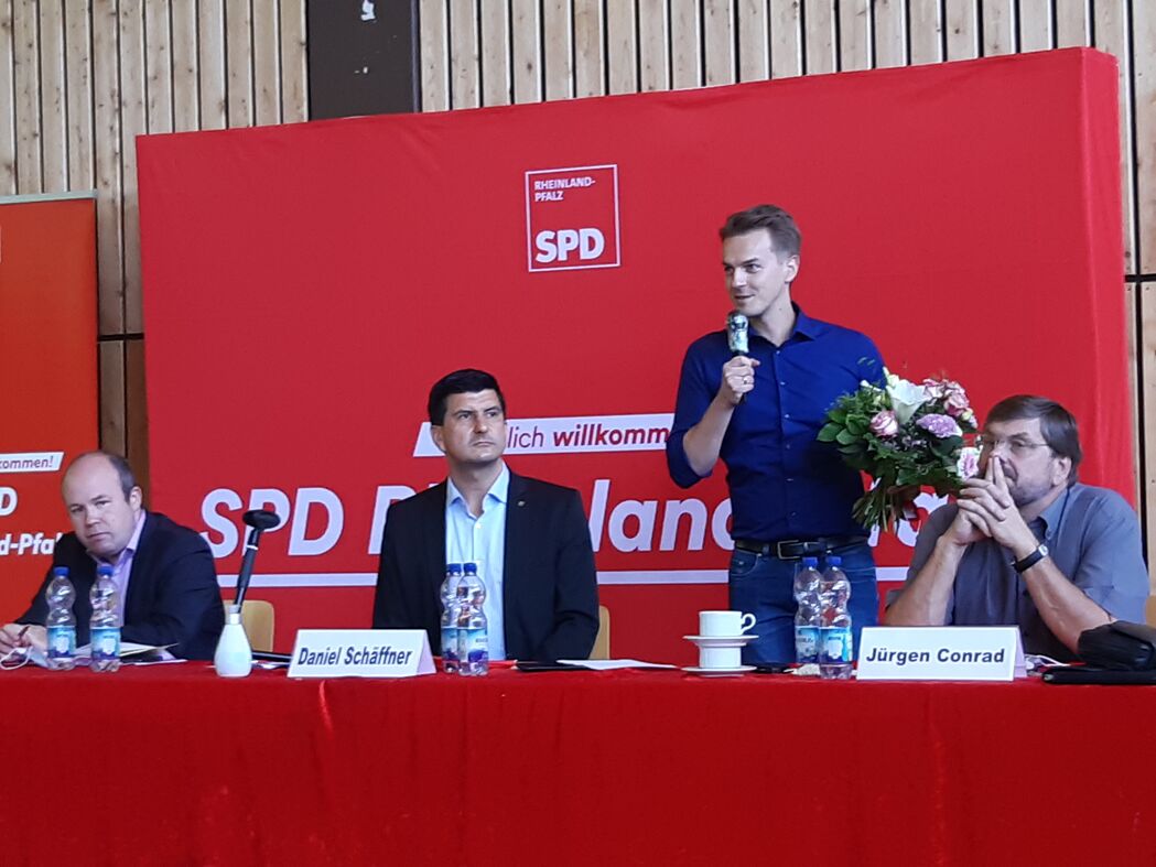 KAISERSLAUTERN-HOHENECKEN: Am Samstag wurde der 34 jährige aus Bruchmühlbach-Misau stammende Matthias Mieves zum SPD Bundestagskandidaten für den Wahlkreis 209 gewählt. Er soll damit die Nachfolge von Gustav Herzog antreten, der seit 2002 den Wahlkreis Kaiserslautern vertritt. Herzog hatte angekündigt, im kommenden Jahr nicht mehr antreten zu wollen. Matthias Mieves setzte sich in einer Kampfabstimmung mit 55% im ersten Wahlgang gegenüber drei weiteren Mitbewerberinnnen und Mitbewerbern durch. Rebecca Schmitt wird als Zweitplatzierte auf die Landesliste gesetzt.