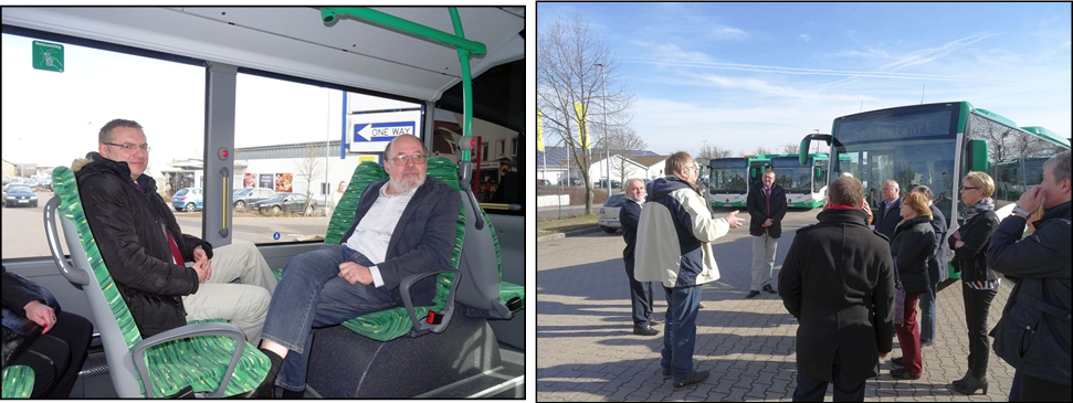 Die Firma Reisedienst Krauß & Wolff-Reisen GmbH, Kirchheimbolanden, hat am 1. Januar 2017 den Linienverkehr im Donnersbergkreis verantwortlich übernommen. Anlass für die SPD-Kreistagsfraktion und Winfried Werner, Landrat, sich nach den ersten Wochen vor Ort zu informieren. Sabine und Markus Behles stellten zunächst ihren Fuhrpark vor und berichteten, dass für das Linienbündel im Donnersbergkreis u. a. 40 neue Standard-Niederflurbusse angeschafft wurden. Von der Qualität und guten Ausstattung konnten sich die Mitglieder bei einer Rundfahrt durch Kirchheimbolanden überzeugen. Dabei wurde eine Route des Stadtbusses „Residenzrenner“ ausgewählt. Im Regelverkehr werden die Stadtlinien in Kirchheimbolanden, Eisenberg und Rockenhausen mit einem Sprinter gefahren, der ebenfalls behindertengerecht ausgestattet ist. Michael Cullmann interessierte sich für die Fahrgastnachfrage in den Stadtlinien.