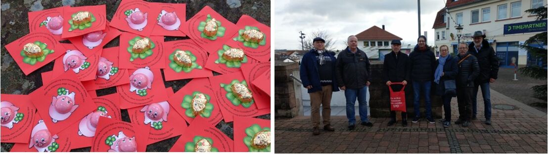 Heute haben Mitglieder unseres Ortsvereins Glücksbringer am Mozartbrunnen und den umliegenden Geschäften verteilt.