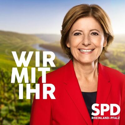 Bei der Landtagswahl am 14. März bin ich Spitzenkandidatin meiner SPD Rheinland-Pfalz . Dann geht es um eine starke Wirtschaft, gute Arbeit, beste und moderne Bildung, eine verlässliche und gute Gesundheitsversorgung und Pflege in Stadt und Land, einen wirksamen und gerechten Klimaschutz und natürlich um den Zusammenhalt in unserem Land. Das alles will ich mit Euch gemeinsam schaffen.