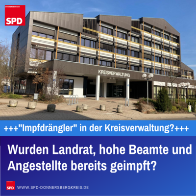 Kirchheimbolanden: Laut Informationen der SPD-Kreistagsfraktion sollen hohe Beamte und Führungskräfte der Kreisverwaltung entgegen der Priorisierung bereits geimpft worden sein. Auf eine erste Nachfrage der SPD-Kreistagsfraktion hin, konnte Landrat Rainer Guth den Vorwurf der „Impfdrängelei“ in der Kreisverwaltung nicht ausräumen. Seine Ausführungen lassen offen, welche Personen und Personenkreise über die Priorisierung hinaus geimpft wurden. Aus diesem Grund veröffentlicht die SPD Kreistagsfraktion einen offenen Brief mit weiteren Fragen an den Landrat.