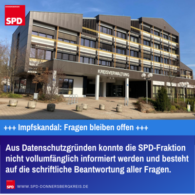 Kirchheimbolanden: In der Sitzung des erweiterten Kreisvorstandes sind zwar weitere Informationen gegeben und einige Fragen der SPD-Fraktion beantwortet worden, aber aus tatsächlichen oder vorgeschobenen Datenschutzgründen konnten die Fraktionsmitglieder nicht umfänglich informiert werden. Es bleiben weitere Fragen offen. Die SPD Kreistagsfraktion besteht daher auf die konkrete und schriftliche Beantwortung aller noch offenen Fragen.