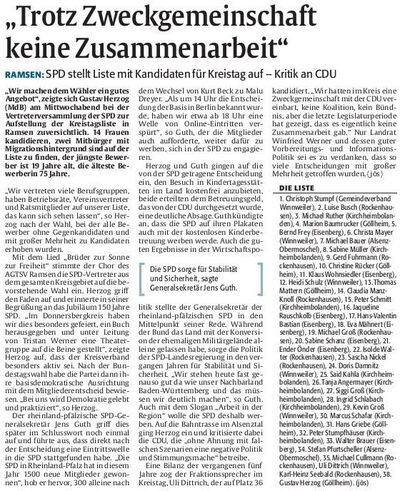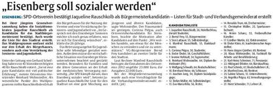 Bei ihrer jüngsten Generalversammlung haben die Sozialdemokraten Jaqueline Rauschkolb als Kandidatin für das Stadtbürgermeisteramt bestätigt. Auch wurde die Liste für den Stadtrat erstellt. Das Wahlprogramm umfasst nicht nur den Erhalt des Bürgerhauses, sondern auch eine Verstärkung der Senioren- und Jugendarbeit.