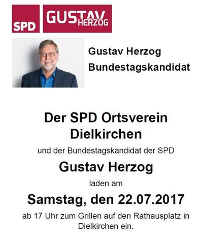 Am Dienstag, dem 01.08.2017 wird Gustav Herzog mit dem SPD Ortsverein Oberes Appeltal unterwegs sein.