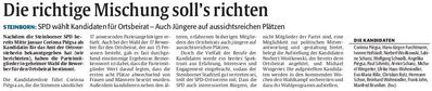 Gut besucht war die Mitgliederversammlung der SPD im „Hallchen“ in Steinborn zur Wahl der Ortsvorsteherkandidatin und zur Wahl der Kandidatinnen und Kandidaten für die SPD-Liste für die Ortsbeiratswahl in Steinborn.