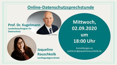 Die Abgeordnete Jaqueline Rauschkolb veranstaltet mit dem rheinland-pfälzischen Landesdatenschutzbeauftragten Dieter Kugelmann am Mittwoch, den 02.09.2020 um 18 Uhr eine Datenschutz-Sprechstunde.