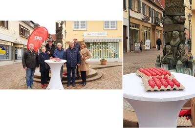Am Ostersamstag haben Mitglieder unseres Ortsvereins einen langjährigen Brauch fortgesetzt und "Rote Ostereier" am Mozartbrunnen verteilt. Dabei ergaben sich vielfältige Möglichkeiten, mit Passanten/Innen ins Gespräch zu kommen.
