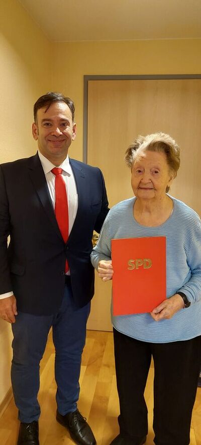 Wilma Heinze aus Dörnbach wurde in dieser Woche vom Ortsvereinsvorsitzenden Güngör Aydin für 65 Jahre Treue zur Partei geehrt. Nachdem Sie die Schrecken des 2. Weltkrieges noch selbst als Kind und Jugendliche miterlebt hatte, entschloss sich Wilma Heinze nach dem Krieg der SPD beizutreten. Sie wollte einen Beitrag leisten eine neue Demokratie mit demokratischen Parteien in Deutschland aufzubauen. Güngör Aydin bedankte sich bei Wilma Heinze für die jarhzehntelange Treue und ihr großes Engagement und wünschte ihr alles Gute und vor allem viel Gesundheit.